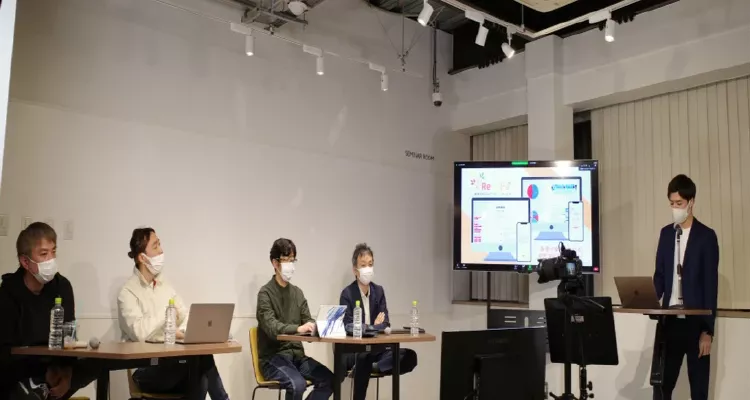 (左から、コメンテーターの East Ventures:大柴 貴紀さん、Venture Café Tokyo:Ryusuke Komura さん、株式会社ミライセンス:香田 夏雄さん、株式会社リーバー:伊藤 俊一郎さん、DiningX 代表:勝村 風我)